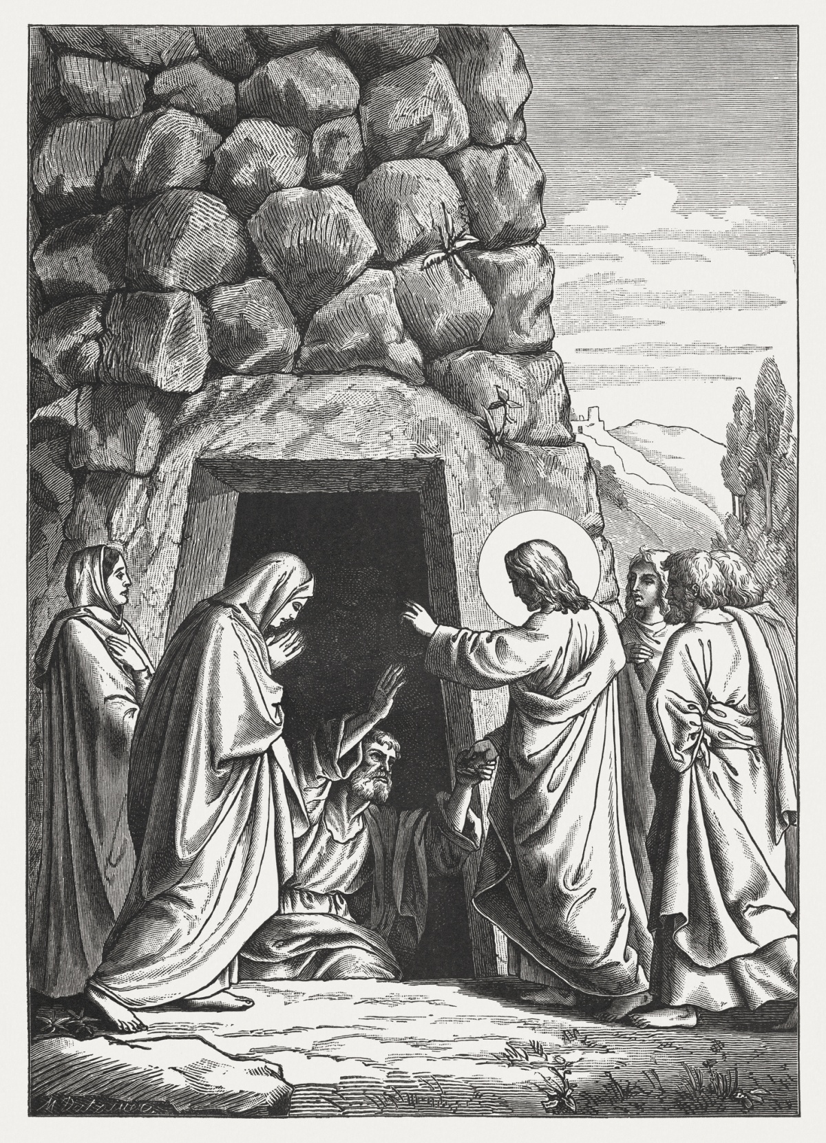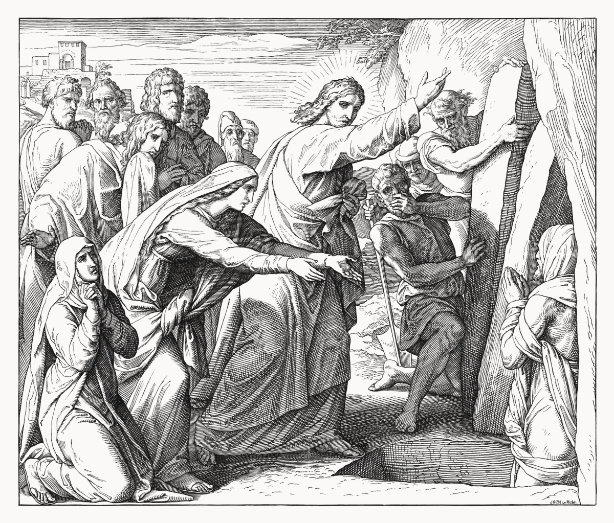 The raising of Lazarus is as stunning to us today as it was for those who witnessed it. In this passage, we encounter Jesus both as the Son of God and the Son of Man, fully divine and fully human. Who but God could do such a thing as raise a dead man back to life by speaking three words with absolute authority, “Lazarus, come out!”? But we are also shown the depths of Jesus’ full humanity when we see him deeply moved, perturbed to the depths of his being, by the death of his friend, Lazarus, and in the profound compassion he has for the pain of loss he sees in Martha and Mary. This is revealed most heartrendingly in three other words, “And Jesus wept” (verse 35).