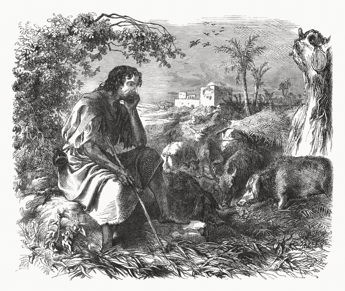 In the parable, we see the younger brother, all full of youthful arrogance and willfulness, demanding his portion of his father’s estate to go off and to do whatever he wishes and wills to do with it, without interference from any authority but his own self. We see how he squanders it all on ‘wine, women, and song’, with devil-may-care foolishness until he is broke, alone, without support in a foreign land. So desperate is he that he takes a job with a local farmer tending his pigs. The symbolism is intense here. For a Jew, working with pigs, unclean animals, would make him ritually impure, requiring a cleansing process of both himself and his clothes. He would be required to bathe in water, the mikveh or ritual bath, and would remain impure until sunset. Until then, he would have been untouchable, not allowed in the house or the synagogue. Remember this.